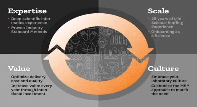 Recruitment and onboarding of specialized personnel underpins all of the important areas outlined above. A reliable MSP will have a recruitment engine as an integral component of their business model. Standard recruiters in the industry external to the MSP business team will have difficulty sourcing staff with expertise in ELN, CDS, LIMS, SDMS, and other highly specialized areas of application required for fully supporting your scientific laboratory informatics roadmap. The MSP support program will not be positioned to continuously deliver high quality support across a vast array of scientific platforms without the ability to quickly source and train scientific and laboratory personnel having expertise in all of the key functional areas.